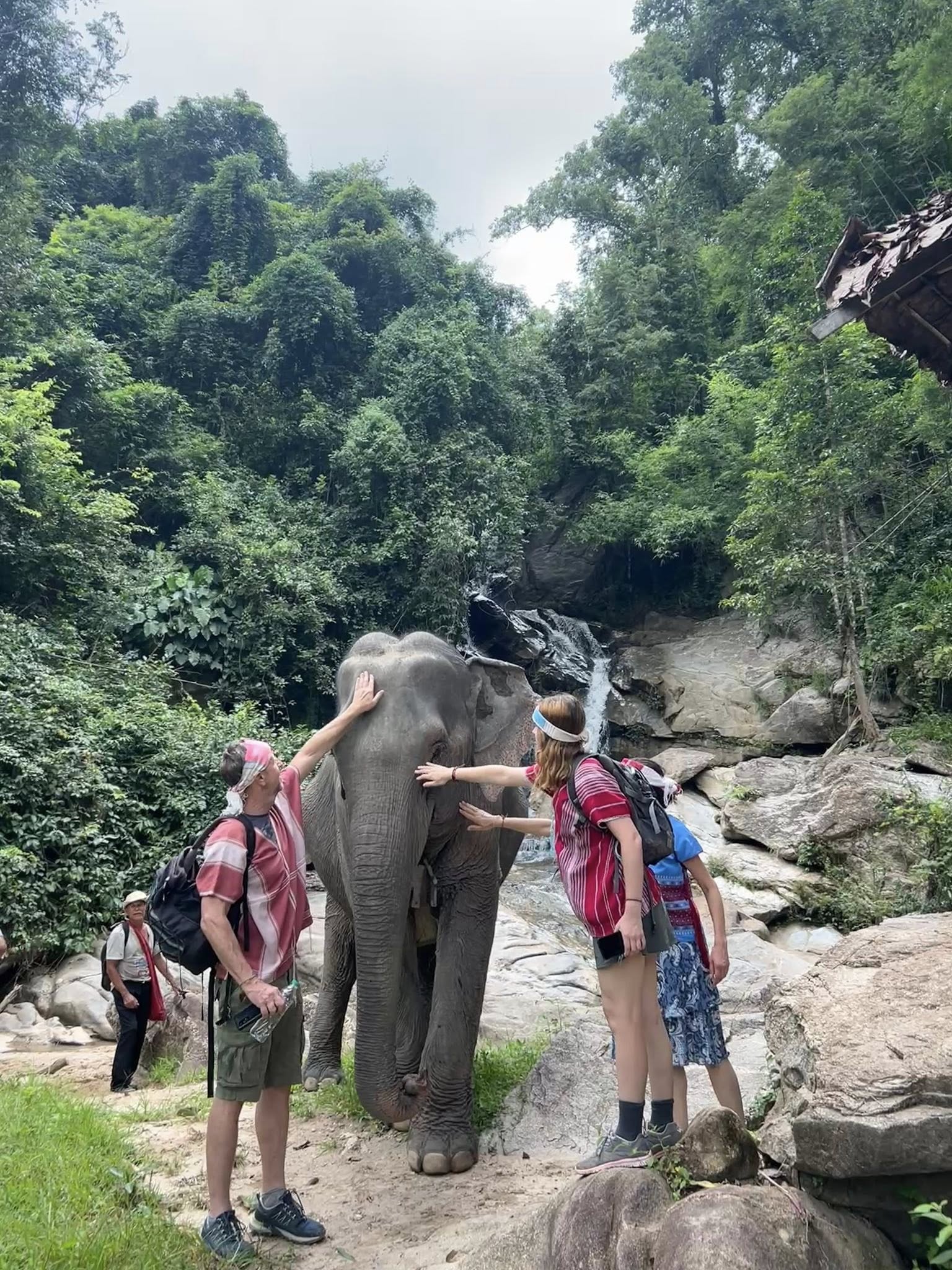 - Walk with our beautiful, majestic elephants through the rainforest to the waterfall.